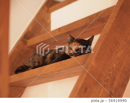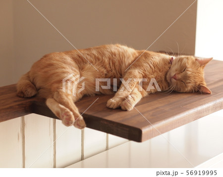 なかよしにゃんこ、少し寒くなって、雨が降った日のお昼寝。猫イメージ素材