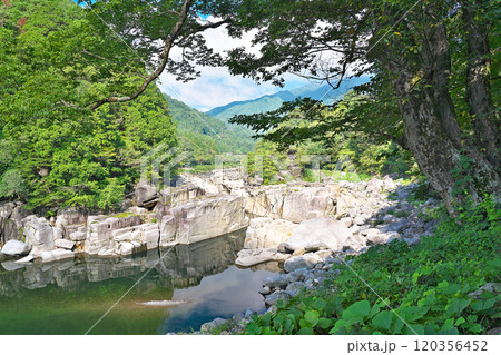 信州 木曽路の景勝 裏寝覚(うらねざめ) 寝覚の床の下流にある(スローシャッタ)