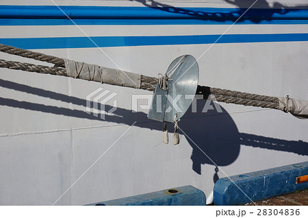 航海練習船日本丸の舫い綱に付けられたねずみ返し