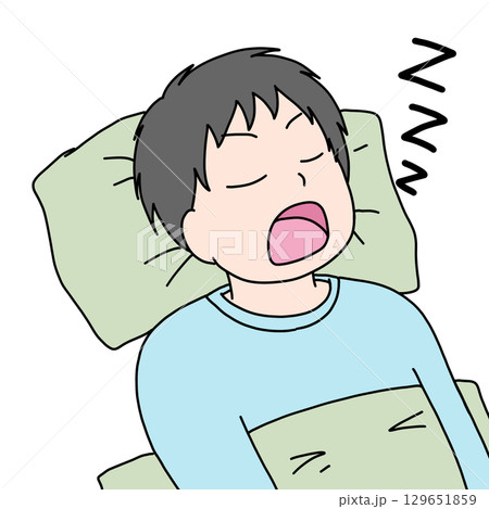 就寝 布団で眠る男性のイラスト