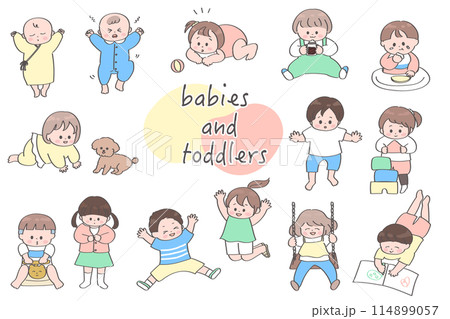 赤ちゃんと幼児の手書きのイラストセット スタンダードカラー