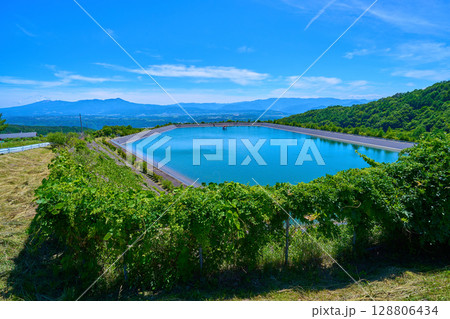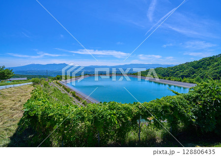 長野県東御市の横堰池と南西側の眺望(八ヶ岳連峰など)