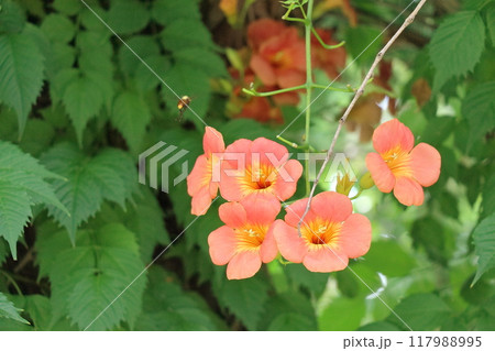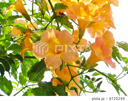 夏を代表する花の一つオレンジ色のノウゼンカズラの花