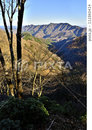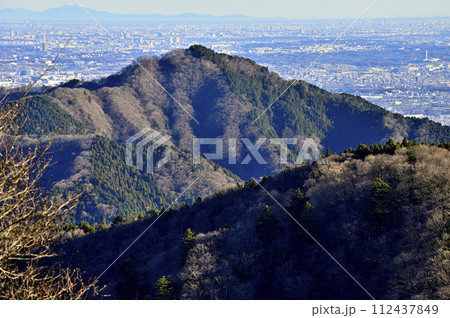 丹沢の能ノ爪 鍋嵐東尾根より望む相州アルプスの華厳山と遠くに東京スカイツリー