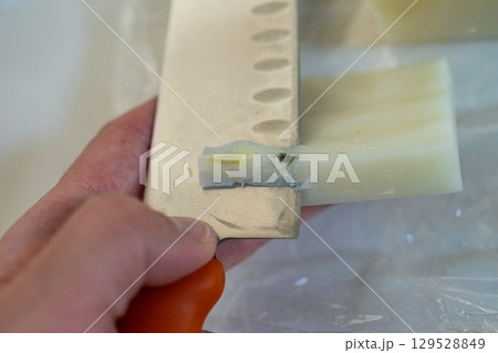おもちのカビを包丁で削る