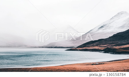 Majestic Snowy Mountain Landscape with Tranquil Lake Reflection and Birds