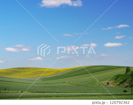 Idyllic Rolling Hills Under a Clear Blue Sky With Gentle Clouds
