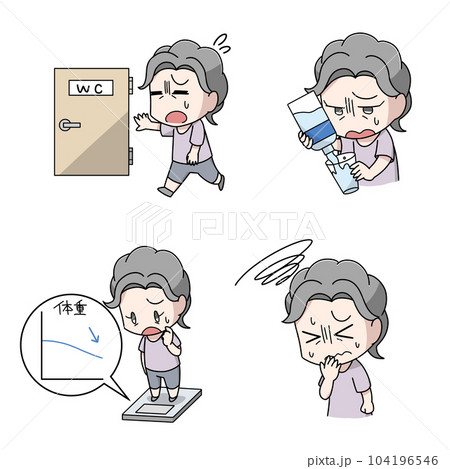 高血糖の症状が出る女性のイラスト4パターン