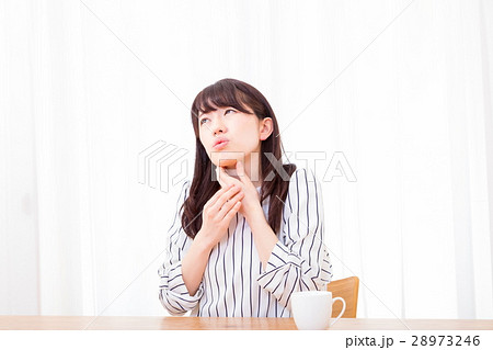 風のひき始め 扁桃腺 風邪 ネガティブイメージ 体調不良 女性 ポートレート 20代 30代