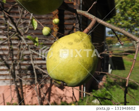 花梨(かりん)の果実 余白をつけて白バックにて撮影