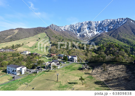 雪が残る鳥取県の春の伯耆大山と北壁
