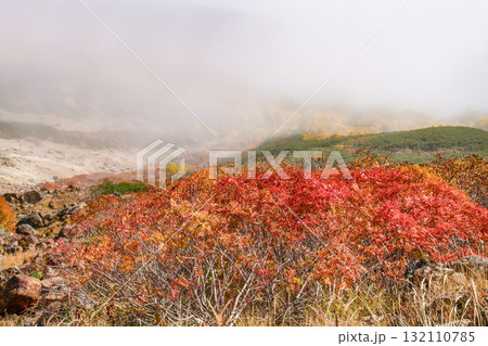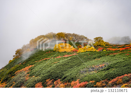 ガスに覆われる乗鞍エコーライン沿いの紅葉(2025)
