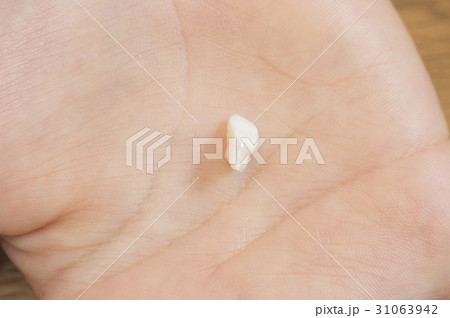 抜けた乳歯を見せる子供手元