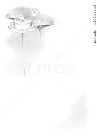 蓮の墨彩画の喪中欠礼はがき 背景素材 モノトーン(はがきサイズ)