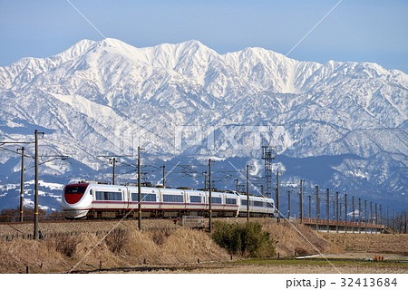 立山連峰と北陸本線 特急はくたか