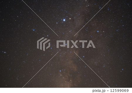 夏の夜空に輝く夏の大三角形と天の川 満天の星空風景