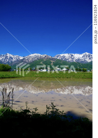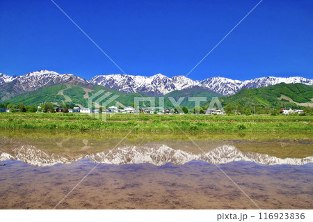 水田と日本アルプス(長野県・白馬村)
