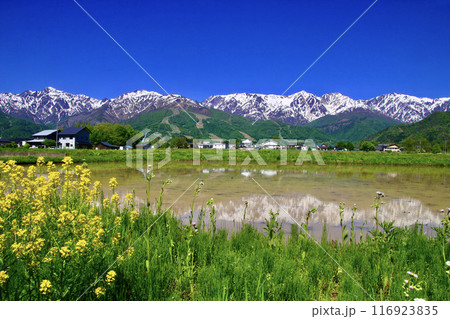 水田とアルプス(長野県・白馬村)