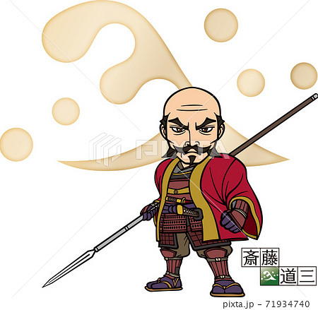 武装して槍を持って正面を向く斎藤道三【3頭身】