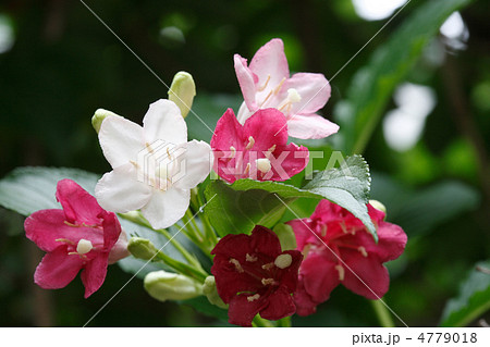 白~赤のグラデーションの花ハコネウツギ:雌雄同株