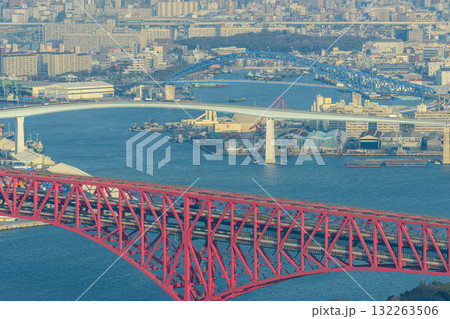 大阪昭和山山頂から見る港大橋と千歳橋となみはや大橋