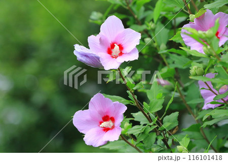 夏秋に咲くアオイ科落葉低木のムクゲ
