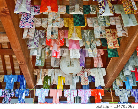 福岡県築上郡にある八幡古表神社色とりどりの着物を干す乾衣祭