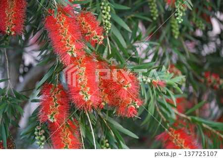 ブラシの木の赤い花が咲いています