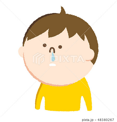 手書き風のイラスト。鼻水を垂らしている男の子。