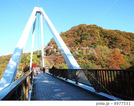 高津戸橋 渡良瀬渓谷 紅葉はじめ 秋の風景