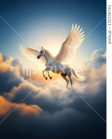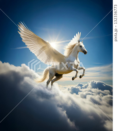 飛翔する白馬