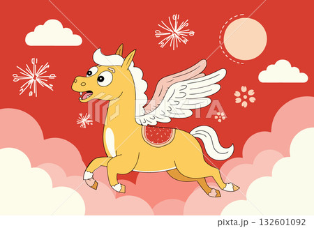 Cartoon Pegasus Flying in the Sky