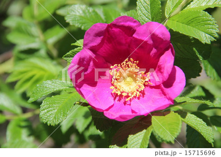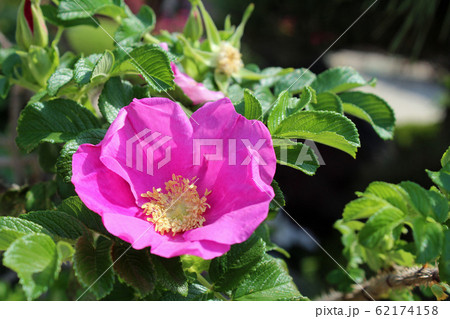 初夏の浜辺のハマナスの花