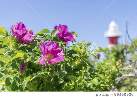 ハマナスと石狩灯台 はまなすの丘公園 石狩市
