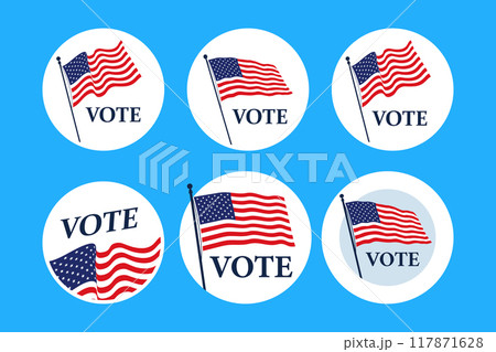 Vote buttons on election day. I voted sticker set. Circle vote bage or label.