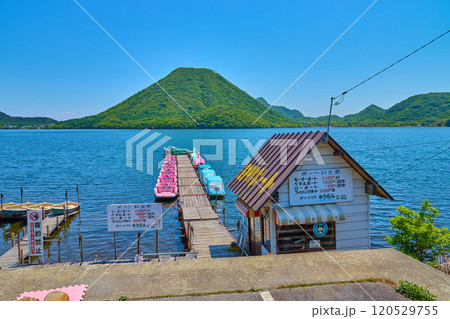 春の群馬県 榛名湖(西岸)と榛名富士