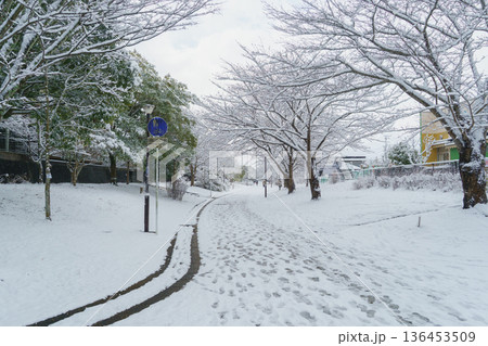 【千葉県千葉市】おゆみ野・四季の道 雪の積もる「春の道」