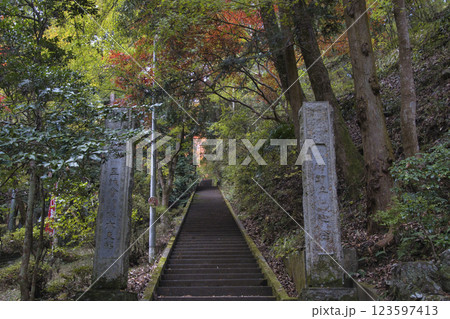 秩父御岳神社・東郷公園 参道の石段と鳥居と美しいもみじ 埼玉県飯能市