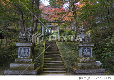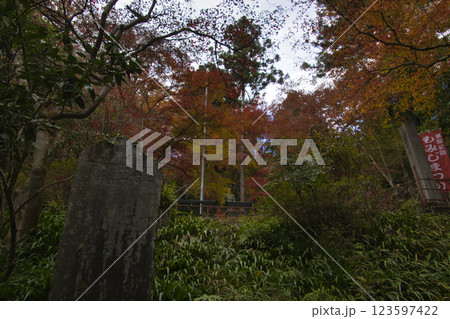 秩父御岳神社・東郷公園 参道の鳥居と美しいもみじ 埼玉県飯能市