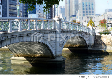 大阪府大阪市の中之島にあるばらぞの橋周辺の風景。