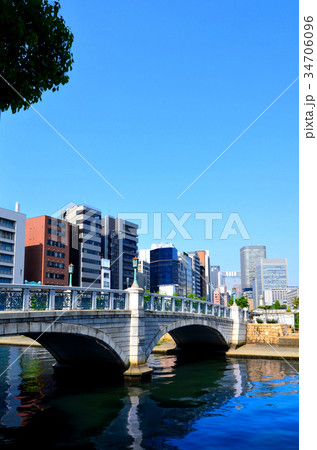 大阪府大阪市の中之島にあるばらぞの橋から西向きにみた風景。