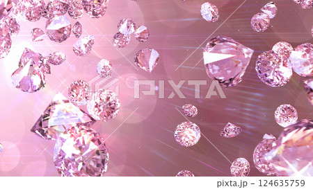 周囲に散らばる宝石 - ピンク背景