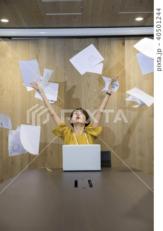 書類をばらまくビジネスウーマン