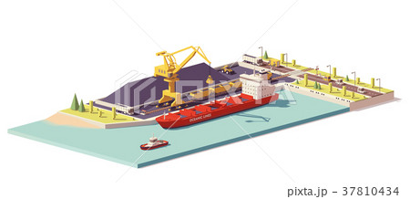 Vector low poly coal terminal and bulk carrier