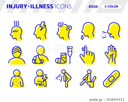 けが・病気に関連する2色スタイルのアイコンセット_006