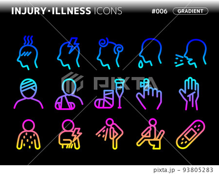 けが・病気に関連するグラデーションスタイルのアイコンセット_006