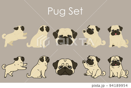 かわいいパグのイラストセット 主線なし