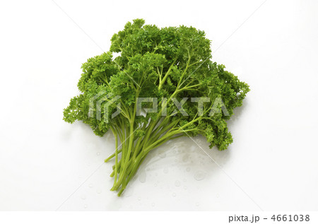 野菜、ハーブの「パセリ」。背景の白バックに小ゴミが残る場合があります。