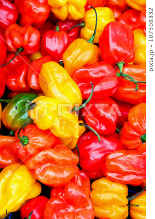 Group of fresh and healthy organic peppers of various colors. Healthy food. Vegetarian food