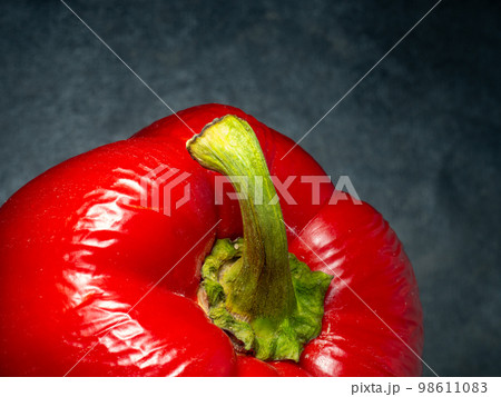 bulgarian red pepper. On a blue background of oil paint. Food background